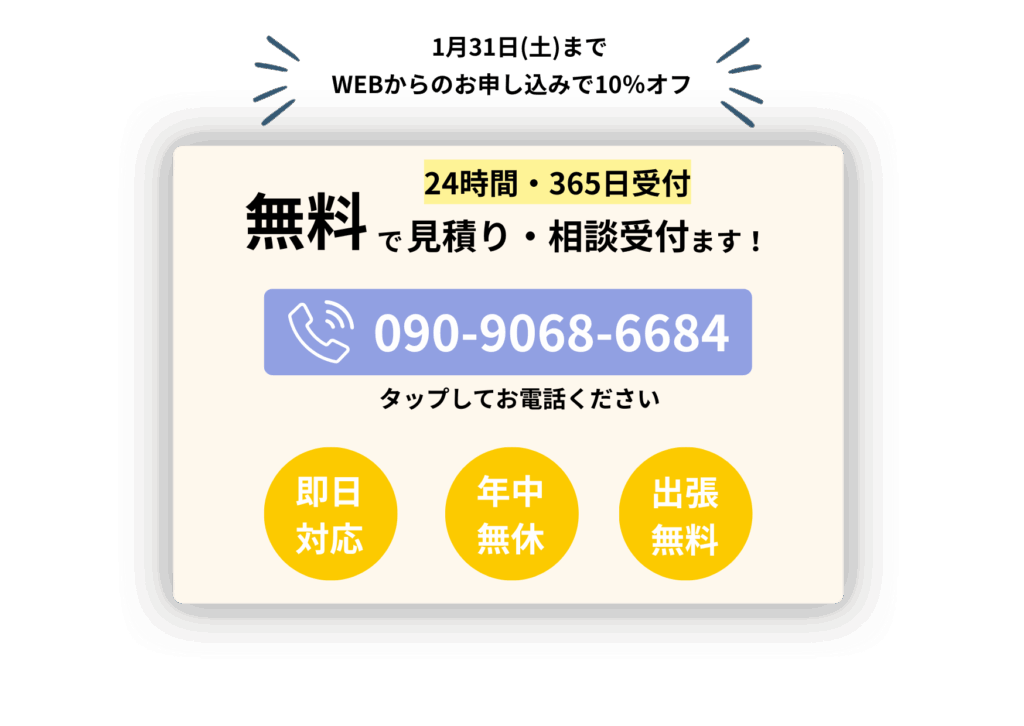 お電話またはお見積りフォームからご連絡ください。現地は弊社スタッフが訪問し、詳細なお見積りを作成してお届けします。