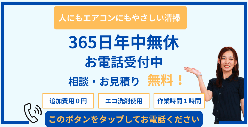 A. 一般的には [1〜2年に1回] のクリーニングがおすすめです。特にカビ臭・水漏れ・効きが悪いなどの症状があれば早めの洗浄を!